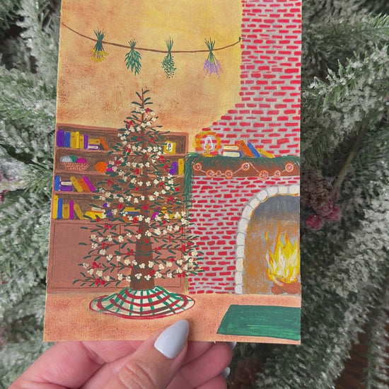 Enjoy this original artwork that was used to create the print for the December snail mail club. This 5x7 piece was done all in gouache paint. This piece is entitled, Christmas In The Burrow and is based off my first children's book, The Adventure Of Theodore James.