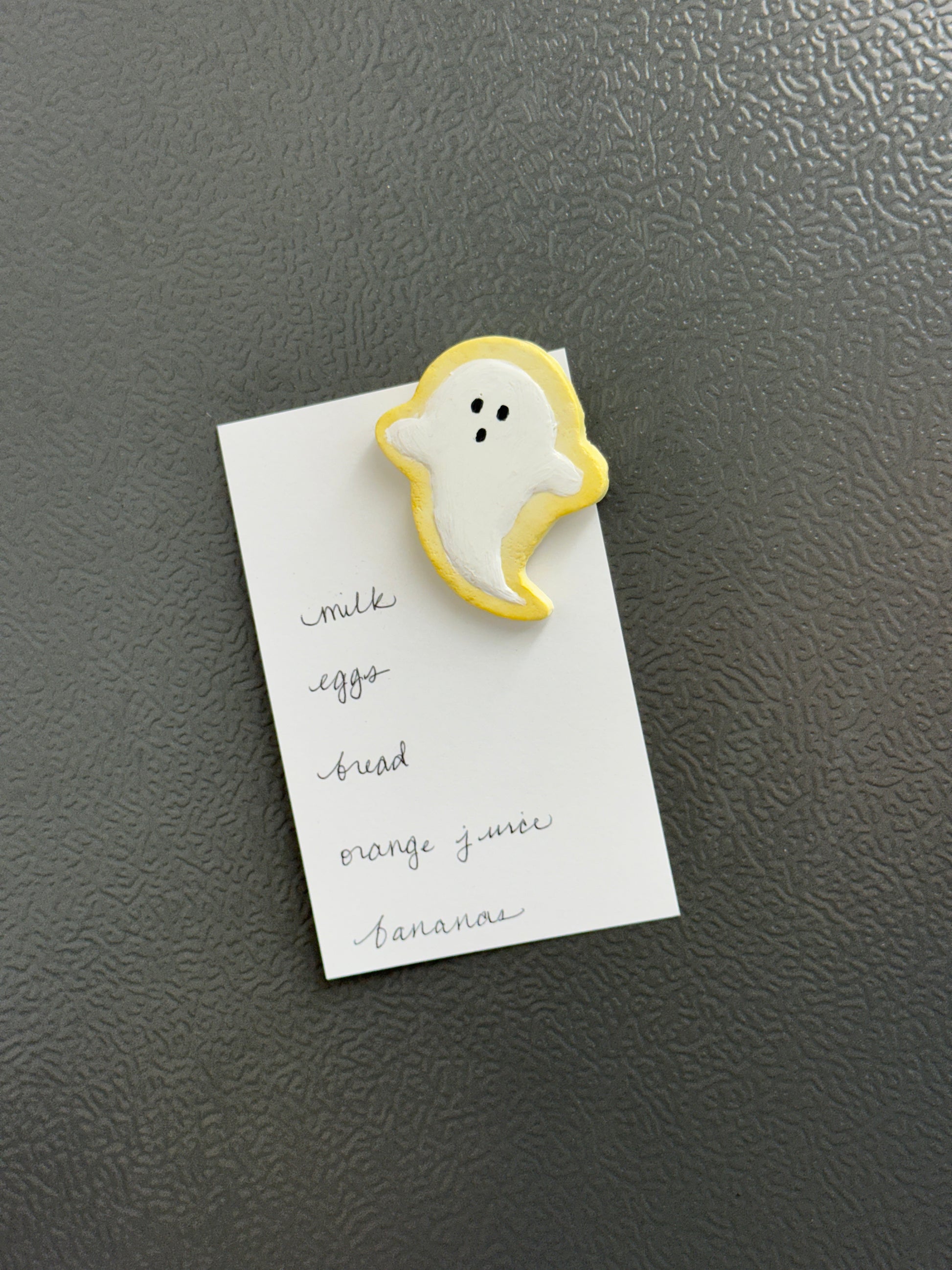 Add a spooky sweet touch to your fridge with these handmade polymer clay magnets that look just like Halloween sugar cookies. Each magnet features colorful, festive designs that bring a playful charm to your kitchen or workspace while keeping your notes and reminders in place. Perfect for Halloween lovers who want a fun, unique decoration with a dash of whimsy!