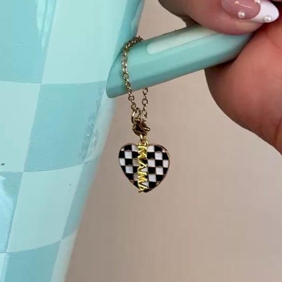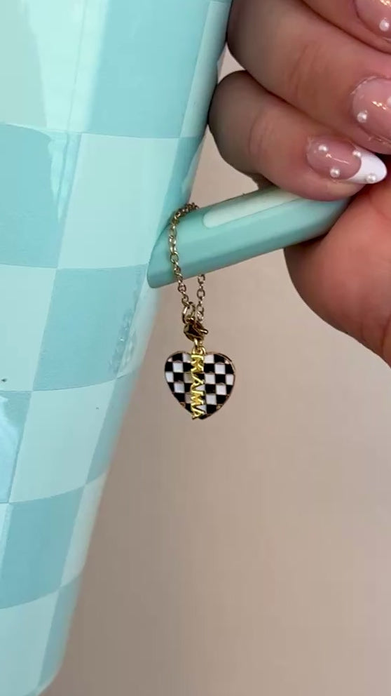 Personalized Checkered Heart 'Mama' Tumbler Charm