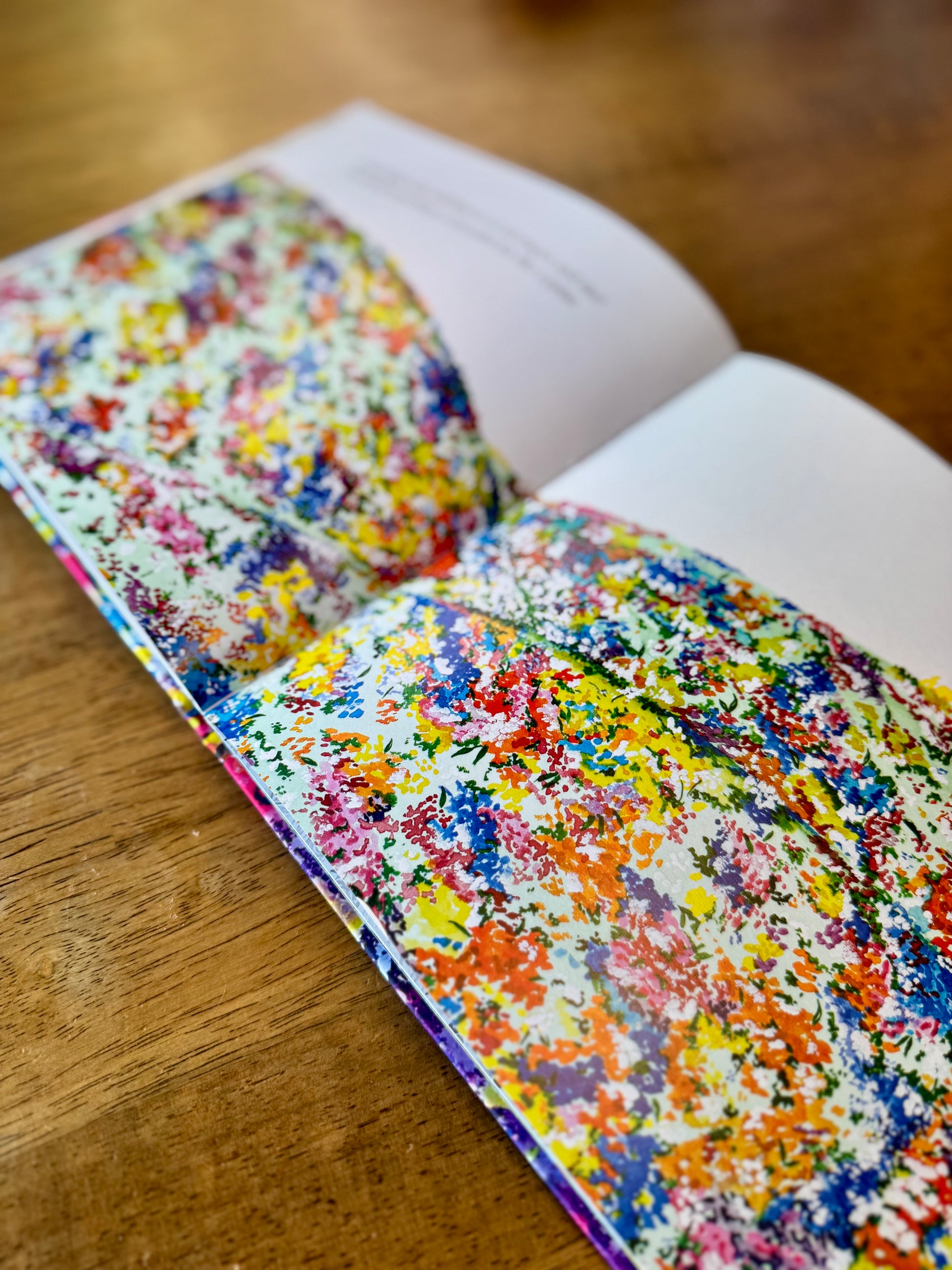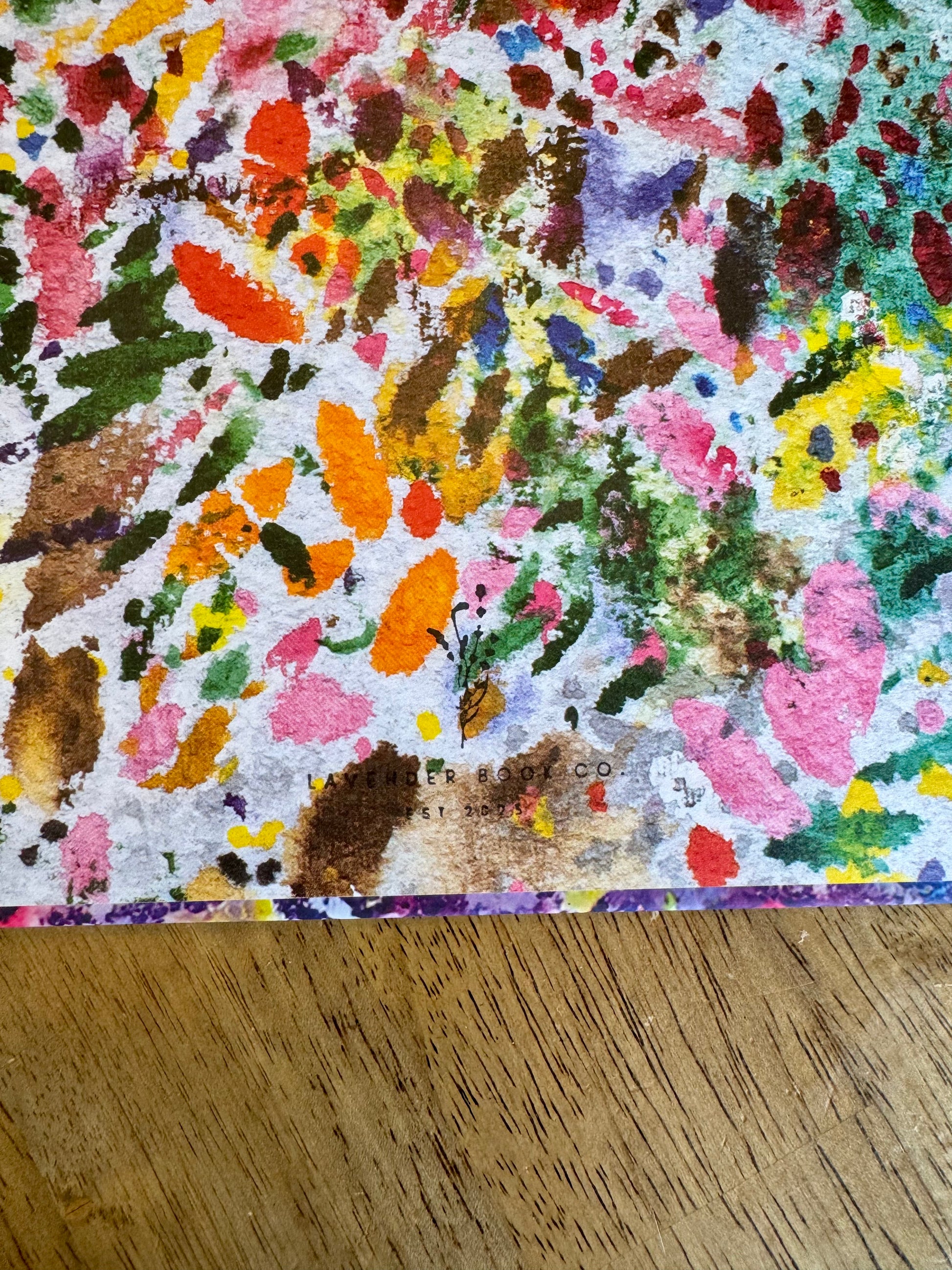 The hardcover has a matte touch finish complete with foil lettering on the title. Inside the cover, holds a picture of the paper towel that was used for every watercolor stroke for the illustrations. Also found inside is an embossed company logo and accompanied by a company stamp in the back cover. The paper used is 100 pound paper. This copy is the 8x8 inches.