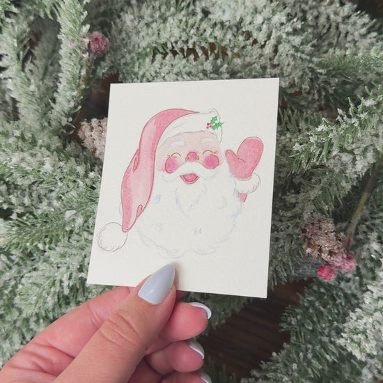 This watercolor piece featuring a vintage Santa, was used for the design of the December snail mail club. This is an original piece and brings the magic of a vintage Christmas to your home.