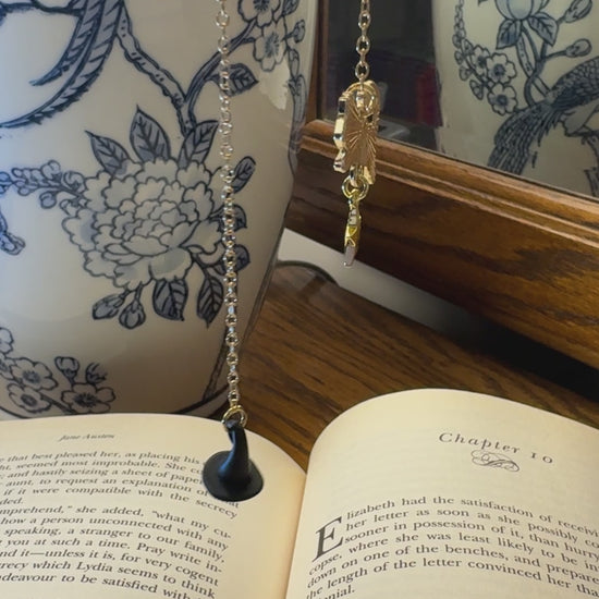 Our chain bookmarks are all 10" in length and use a chain that is dainty enough to never damage the pages of your beloved books, but also sturdy enough to withstand daily use.