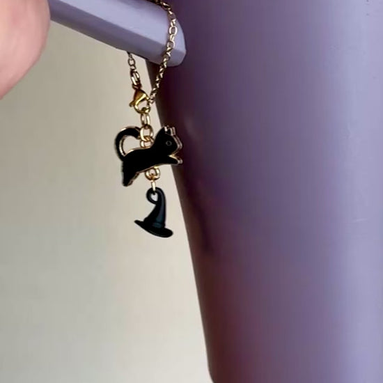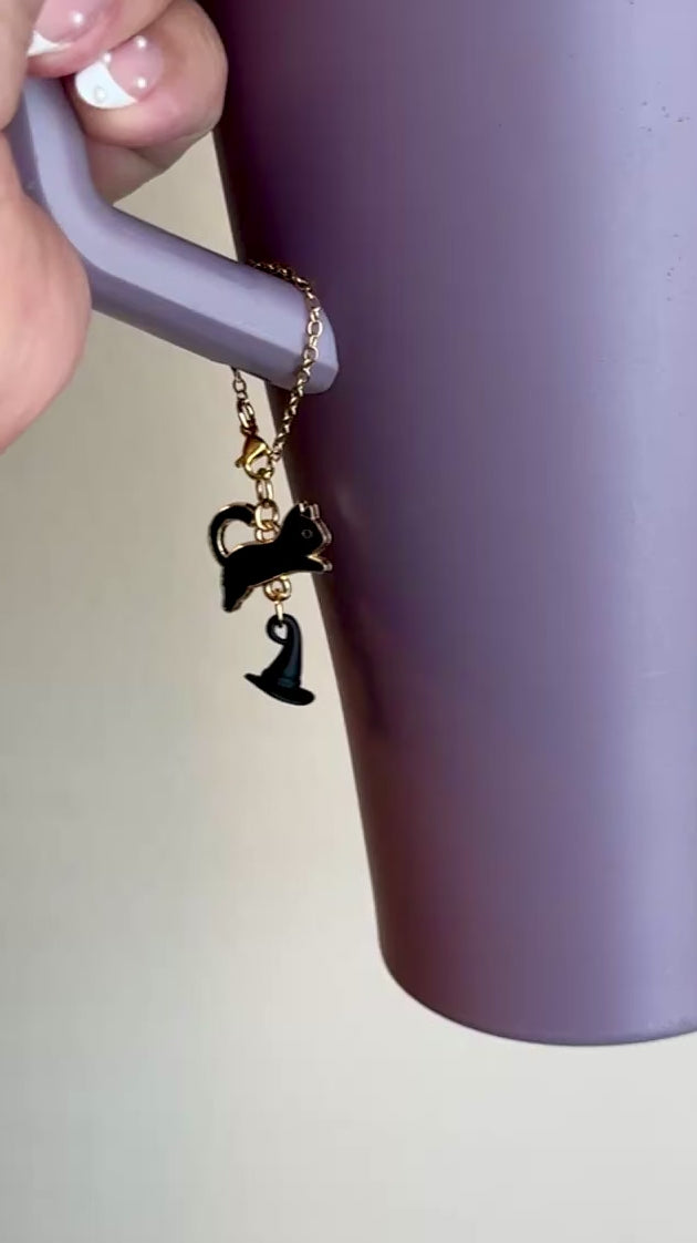 Add a touch of spooky fun to your favorite tumbler with this Witchy Tumbler Charm. Handcrafted with care, it features a playful black cat nestled above a classic witch’s hat—perfect for Halloween or any day you want to show off your mystical side. Lightweight and easy to attach, this charm brings a whimsical vibe to your drinkware while celebrating the magic of the season.